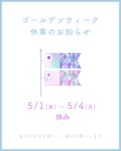 ゴールデンウイークの営業について 2026-04-26 最終更新日時 : 2026-04-26 fuumo今年のゴールデンウイークの営業日程は、5月1日(金)~5月4日(月)お休みをいただき、前後は営業いたします。不定休をいただく場合もございますので、ご予約フォームでご確認ください。