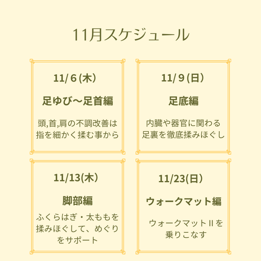 この、グループレッスンでは足部・脚部の揉み方を、4回に分けて丁寧に実践していきます。