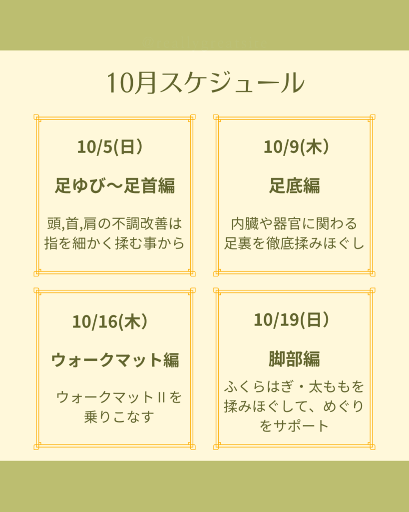 10月のグループレッスンのご案内です。